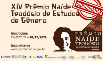 Prorrogadas as inscrições da décima quarta edição do Prêmio Naíde Teodósio de Estudos de Gênero até o dia 10 de dezembro. Os/as interessados/as podem se inscrever através