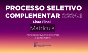 Campus publica resultado final das matrículas dos Cursos Agroindústria, Eletroeletrônica e Saneamento