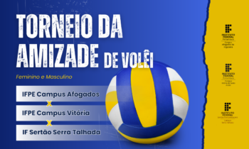 Os Campi de Afogados da Ingazeira e de Vitória de Santo Antão do IFPE realizarão, no dia 19 de julho, o Torneiro da Amizade de Vôlei. A competição acontecerá na Quadra da Escola de Referência em Ensino Médio (EREM) Professora Ione de Góes Barros, em Afogados da Ingazeira-PE, das 13h às 20h. O torneio envolve ainda o Campus Serra Talhada do IFPE.