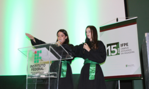 Na noite da última segunda, 15/12, foi realizada a cerimônia de colação de grau das turmas 2025 dos cursos técnicos integrados em Saneamento e Informática, além dos cursos técnicos subsequentes em Agroindústria e Saneamento.