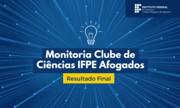 O IFPE Afogados por meio da Direção de Ensino – DEN divulgou nesta terça (15/04), o resultado final da seleção de monitores/as do Clube de Ciências do Campus.