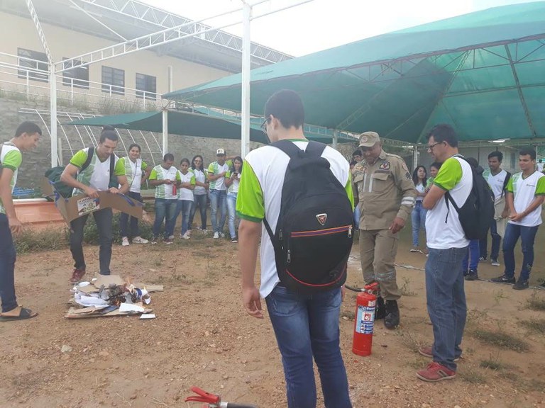 Nesta sexta (24), estudantes dos cursos de Agroindústria e Eletroeletrônica do campus Afogados tiveram uma aula especial: Primeiros Socorros e Combate a Incêndio, ministrada pelo 2º Sargento De Souza, do 3º Grupamento do Corpo de Bombeiros da região. A atividade faz parte da disciplina Segurança do Trabalho, lecionada pela docente Sibele Santos, que também participou da ação.