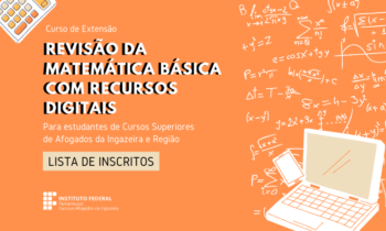 O IFPE Afogados divulga a lista de inscritos no Curso de Extensão ‘Revisão da Matemática Básica com Recursos Digitais’. As vagas foram preenchidas por ordem de inscrição.