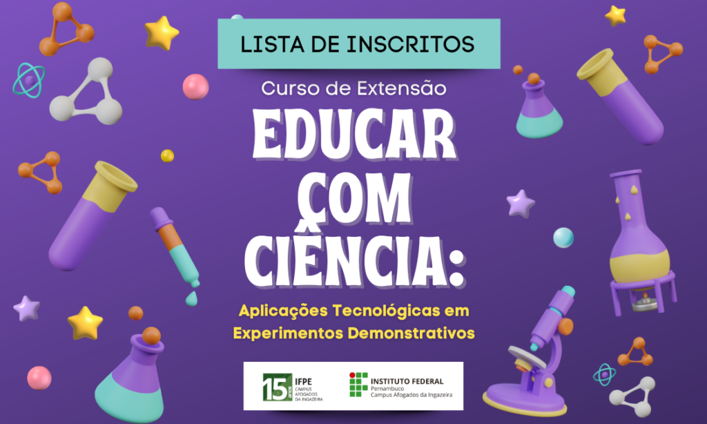 O IFPE Campus Afogados da Ingazeira divulgou a lista de inscritos no Curso de Extensão “Educar com Ciência: Aplicações Tecnológicas em Experimentos Demonstrativos”.