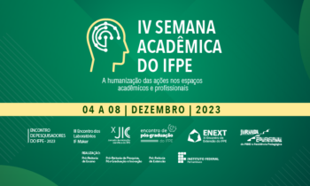 Será realizada, entre os dias 04 e 08 de dezembro, a IV Semana Acadêmica do IFPE, que vai congregar os eventos sistêmicos das áreas de Ensino, Pesquisa e Extensão. Promovida em conjunto pelas Pró-Reitoria de Ensino (Proden), Pró-Reitoria de Pesquisa, Pós-Graduação e Inovação (Propesq), e a Pró-Reitoria de Extensão (Proext), o evento integrará várias atividades dessas áreas finalísticas em torno de um conceito comum, com o objetivo geral de intercâmbio de saberes e da cooperação e integração dos atores educativos do ensino, da pesquisa e da extensão.