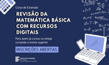 Estão abertas, até o dia 17 de março, as inscrições para o Curso de Extensão ‘Revisão da Matemática Básica com Recursos Digitais’. Pode se inscrever qualquer pessoa com interesse pelo tema que tenha cursado ou esteja cursando o ensino superior, seja estudante do IFPE ou de fora. O curso é inteiramente gratuito.