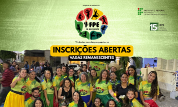 O Projeto de Extensão IFPE em Movimento está com inscrições abertas para novos participantes até o dia 15 de agosto. A iniciativa oferece aulas gratuitas de dança popular para qualquer pessoa interessada, seja do público interno ou externo ao Instituto, a partir dos 13 anos de idade.