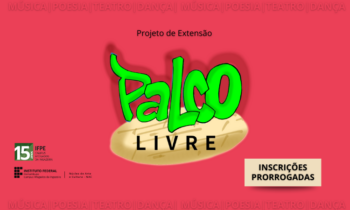 O IFPE Afogados, por meio do Núcleo de Arte e Cultura – NAC comunica que estão prorrogadas até a próxima sexta-feira (30/05) as inscrições de apresentações artístico-culturais do Projeto de Extensão “Palco Livre: Arte no Intervalo”.