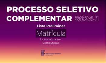 O IFPE Afogados publicou hoje, segunda-feira (26), o resultado preliminar das matrículas do Processo Complementar para Preenchimento das vagas remanescentes do Curso de Licenciatura em Computação.
