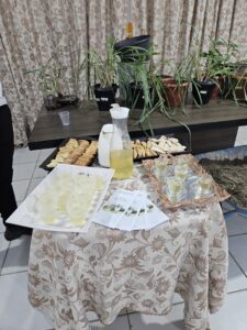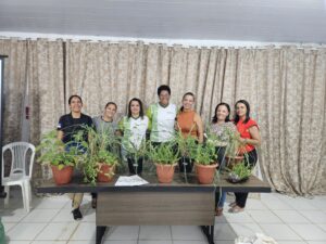 Durante o encontro, foram apresentadas cinco tipos de plantas medicinais, acompanhadas de explicações sobre seus benefícios e formas de utilização. No encerramento, os participantes puderam degustar um chá de capim-santo, como parte de um momento de socialização e vivência prática dos conteúdos abordados.