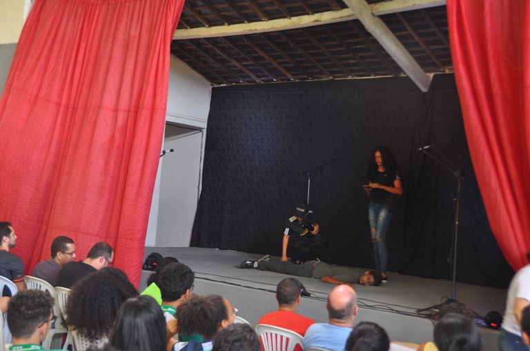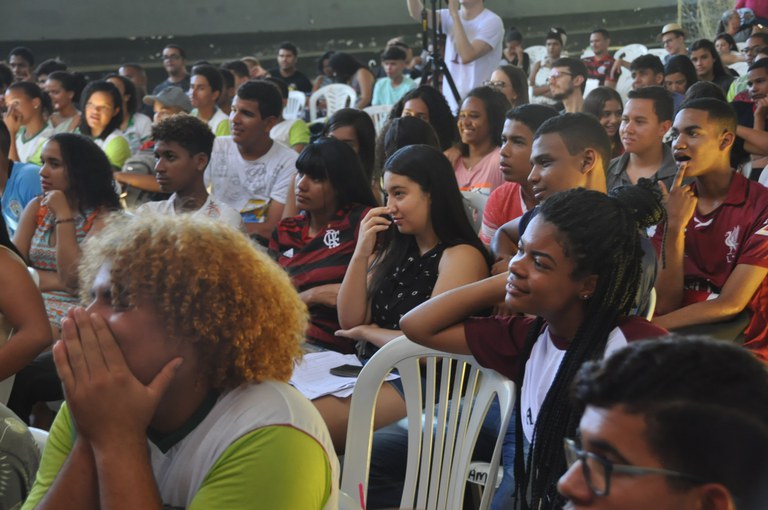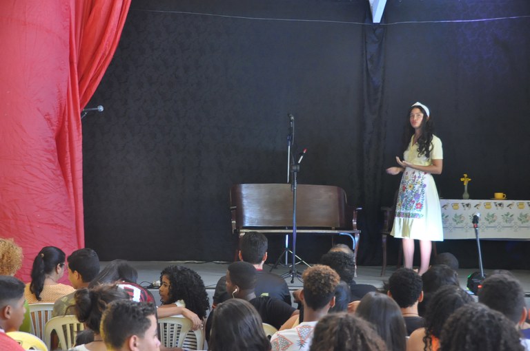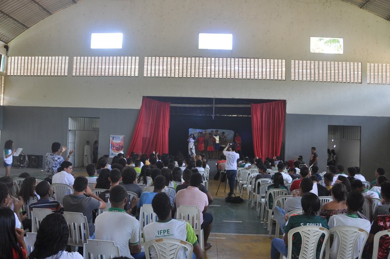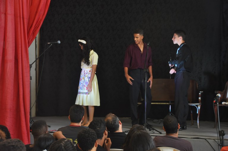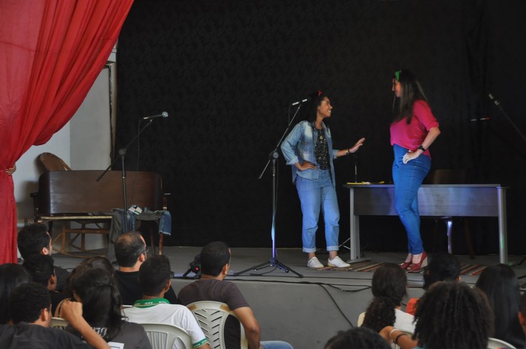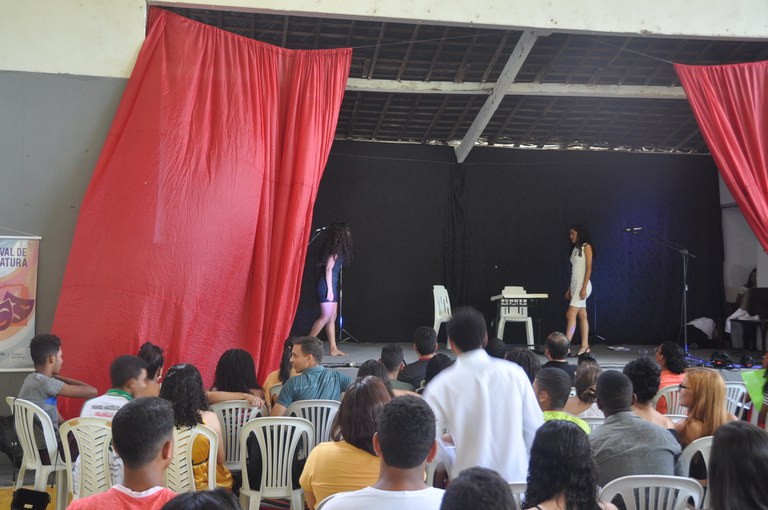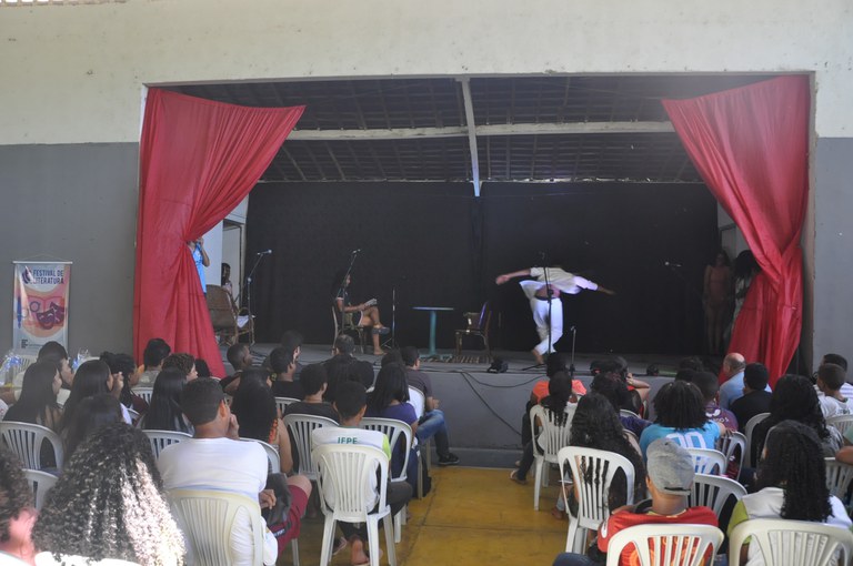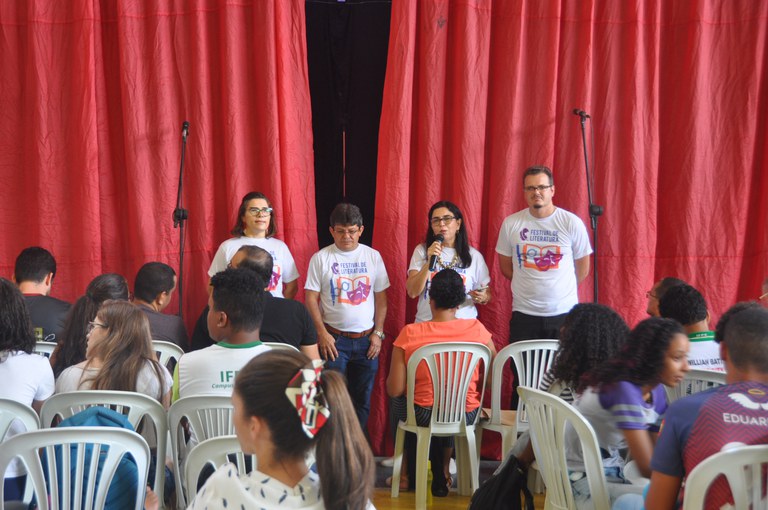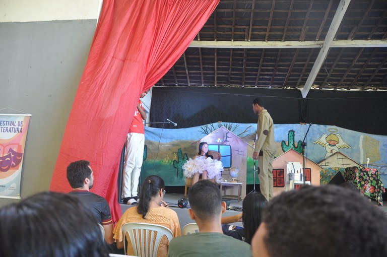 O 16º Festival de Literatura transformou o ginásio de esportes num palco de um grande teatro. Adaptados por alunos dos cursos técnicos integrados ao ensino médio, clássicos da literatura mundial e brasileira se transformaram em peças interpretadas e elaboradas pelos próprios discentes. “Vocês são os protagonistas deste dia, deste evento”, explicou a professora Cristiane Conde, parte do grupo docente de língua portuguesa responsável pela organização do festival. “Esse é um exercício pedagógico, consequência dos nossos trabalhos em sala de aula”, comentou a professora.