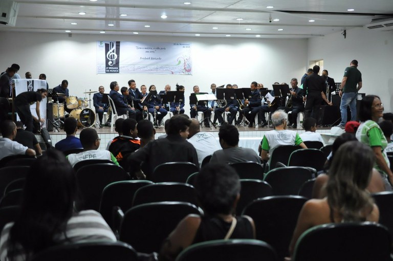 À noite, o público pôde prestigiar as apresentações da Tribanda, uma formação de baixo, bateria e guitarra de São José da Coroa Grande, e da Filarmônica São José de Rio Formoso. “Não é sempre que podemos ver uma filarmônica como essa, centenária. É de bandas como essa que se formam muitos músicos nas cidades. Rio Formoso está de parabéns!”, elogiou o professor de música do Campus Barreiros, Kleyber Borges.