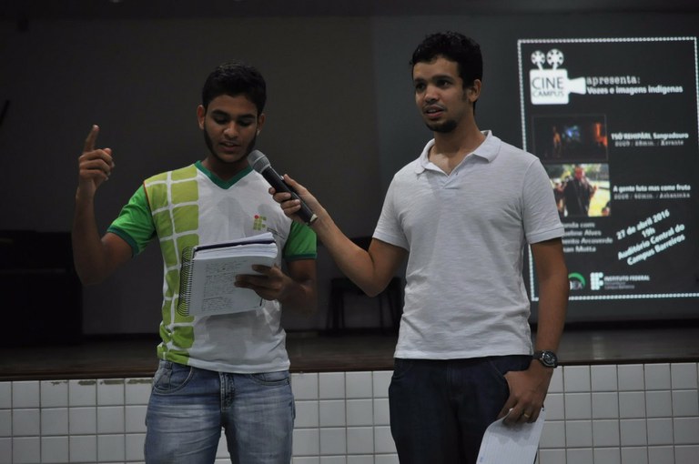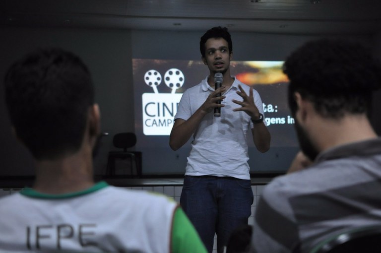 “Está na hora de a gente quebrar essa ideia romantizada do índio. A proposta do cineclube nesse mês não era simplesmente comemorar uma data, como o dia 19 de abril, mas sim refletir sobre o índio no Brasil hoje. E nada melhor para falar da identidade do ser índio do que os próprios índios”, anunciou o mediador da sessão e professor de história do Campus Barreiros, Romerito Arcoverde para o público que lotou o auditório central. Durante sua fala de abertura, ele ainda contextualizou, de forma breve e crítica, a história dos índios no Brasil, com destaque para o processo de colonização ocorrido na região da Mata Sul de Pernambuco.