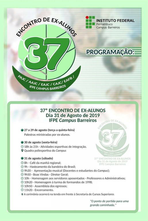 Confira a programação completa do 37º Encontro de Ex-alunos do IFPE-Barreiros