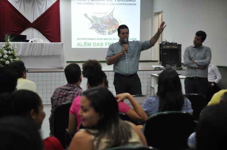Para debater o tema, foram convidados dois palestrantes: o professor Plínio Guimarães, que trouxe a perspectiva de intercâmbio de experiências em comunidades e assentamentos rurais no Nordeste do Brasil; e o gerente geral de uma das maiores redes hoteleiras do mundo, Mauro Barros. Além de pontuar os desafios e tendências contemporâneas na área, destacou a importância de os estudantes aprenderem outros idiomas. “Vocês já estão dando o primeiro passo aqui, que é estudar. Continuem e ampliem isso, para poder se comunicar em outras línguas”, orientou.