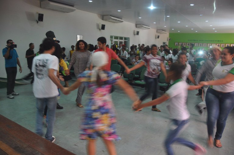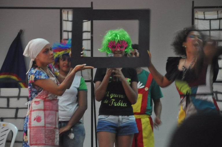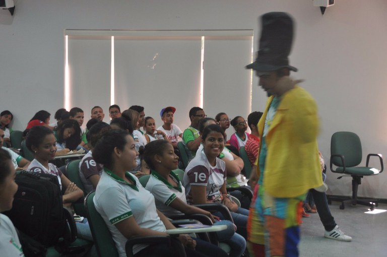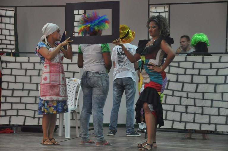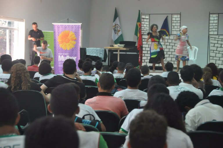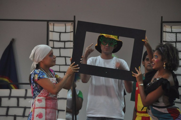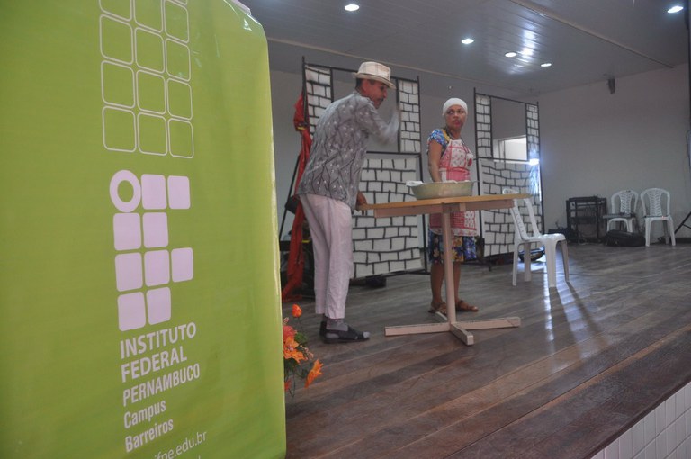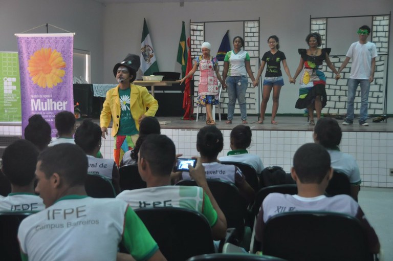 A abertura foi marcada pela encenação da peça “Rosa Gente, Rosa Flor”, da ConsulArt Ltda, que tratou de forma lúdica e didática a Lei Maria da Penha. Com momentos de cantoria e interação com a plateia, o espetáculo contagiou o público jovem que lotou o auditório central. Segundo o autor e diretor da montagem, Lugg Alves, a participação dos estudantes do Campus Barreiros foi uma das mais marcantes. “Eles foram participativos em vários momentos. Parecia até que estavam compondo o espetáculo conosco. Isso é um indicador muito positivo de que nossa proposta de abordar o tema da violência contra a mulher de forma acessível está dando certo”, avalia. Além dele, o elenco era composto por Luciana Torres, Flávio Alves, Fell Silva, Elenita Ramos, Osvaldo Castanha e os técnicos Joan Artur, Wedson Nunes e Zaqueu Ferreira.