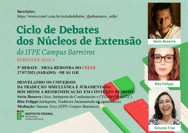 INSCREVA-SE AQUI: https://www.even3.com.br/ciclodedebates_ifpebarreiros_celle/