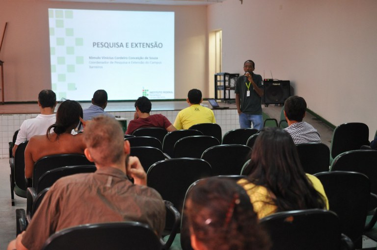 Além de uma breve apresentação do corpo docente do curso, o momento contou com uma palestra do professor Marcelo Mello sobre Agroecologia e uma exposição do coordenador de Pesquisa e Extensão, Rômulo Souza, sobre as diferentes modalidades de bolsa e o Núcleo de Estudos em Agroecologia e Desenvolvimento Social (NEADS).