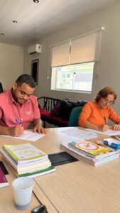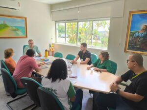 A reunião contou com a presença do diretor administrativo da Cia da Macaxeira, Jadson Antônio, que é ex-aluno da instituição e filho de Josivan da Silva, servidor do Campus Barreiros – um fato que reforça o orgulho da comunidade acadêmica pelo crescimento de seus ex-estudantes. Além dos diretores Caetano e Jadson, participaram do encontro a professora Hélida Mélo, coordenadora do Técnico em Alimentos; o professor Raul Jacobsen, orientador das primeiras estudantes que iniciarão o estágio na empresa; o professor Renaldo Fernandes, coordenador-geral de Ensino; e a coordenadora do Setor de Estágios, Patrícia Ribeiro.