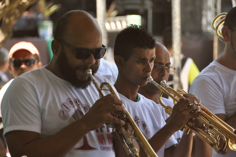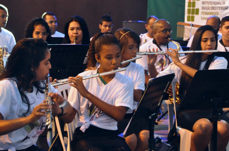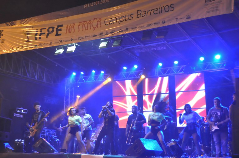 Desde o início do evento, apresentações culturais foram acontecendo no palco e no chão da praça. Os grupos musicais de nossa escola, mostraram a qualidade e versatilidade dos docentes e discentes do curso técnico em Instrumento Musical. Além da Big Band e da Sons do Campus, projetos de maior visibilidade do curso que abriram a programação noturna, o Sexteto Sapé e o Quarteto de trompetes apresentaram um pouco de seu repertório para o público ainda durante o dia. Jadiel Pernambucarte foi quem abriu a programação da tardel, que contou também com o desfile do Maracatu Rural Estrela Brilhante de Lagoa de Itaenga. O Mestre Zé Félix improvisou rimas sobre a visita a Barreiros e a força da educação pública. A cultura nordestina marcou presença também com os bacamarteiros da Associação dos Bacamarteiros do Cabo de Santo Agostinho (Sobac), que esquentaram o público para os shows musicais. Com a Praça do Rosário cheia, a noite terminou em festa: Caxasamba fez o povo dançar com clássicos e hits e Victor Leão, que subiu ao palco por volta das 22h, empolgou o público com repertório popular num show marcado por efeitos pirotécnicos e dançarinas estilizadas.