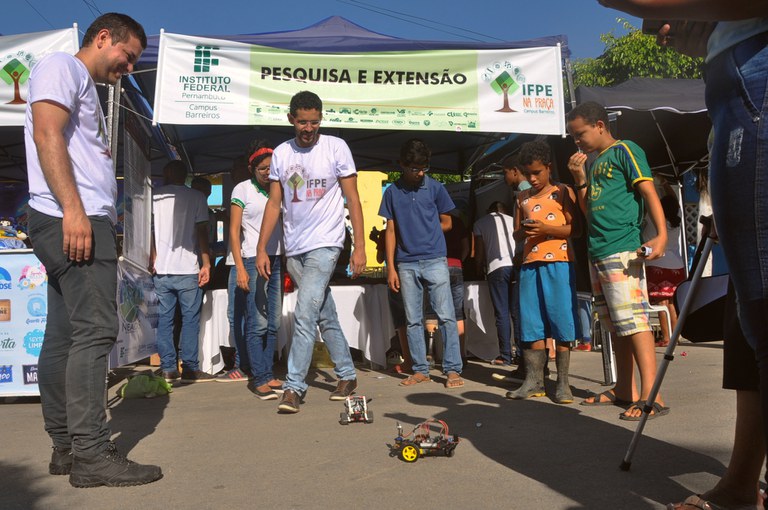 Dentro da Semana de Ciência e Tecnologia, o IFPE Barreiros saiu dos muros da escola e foi à Praça do Rosário, no centro da cidade, apresentar uma amostra do conhecimento produzido pela instituição. Foram 14 horas de programação ininterruptas. A estimativa é que mais de 1500 pessoas tenham passado pelas nossas tendas, informando-se sobre os cursos, participando palestras ou assistindo as apresentações culturais. “A escola é da comunidade, de todos nós. Fizemos esse evento pra confirmar essa nossa disponibilidade em recebê-los e dizer que estamos sempre de portas abertas”, discursou o diretor-geral do Campus Barreiros, Adalberto de Souza Arruda, na abertura do evento.