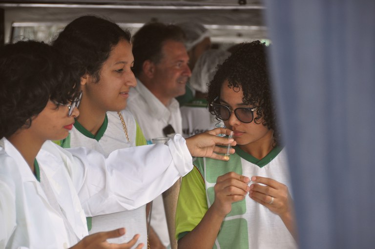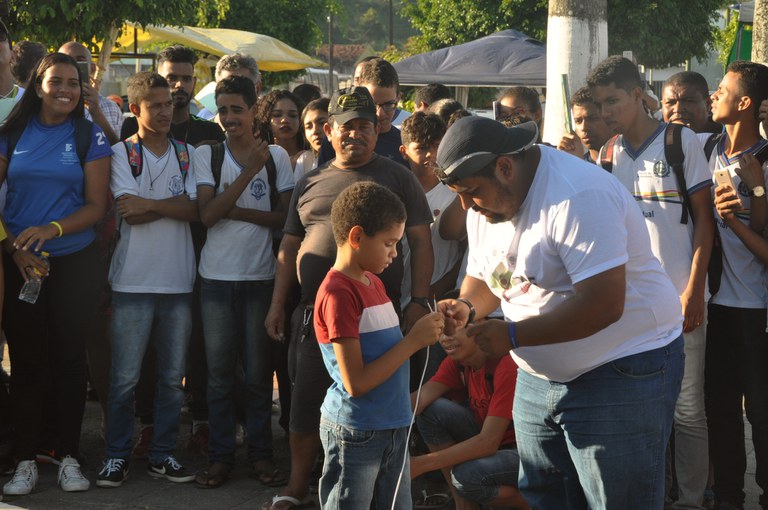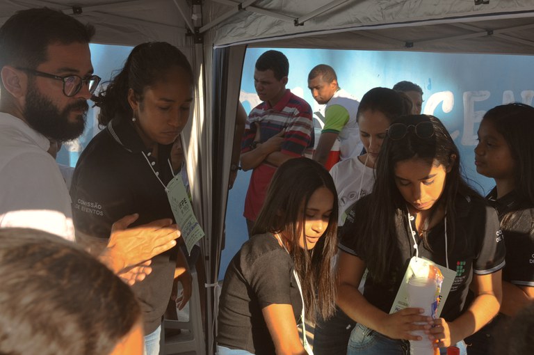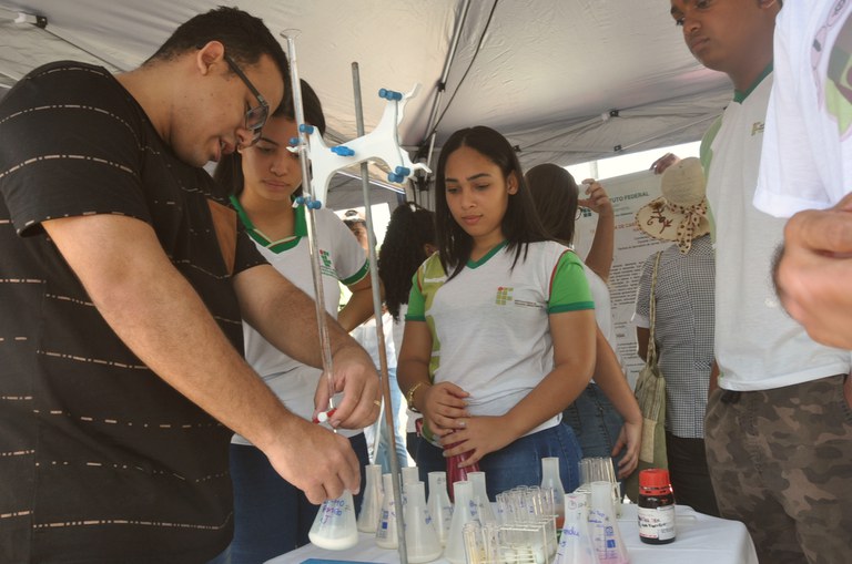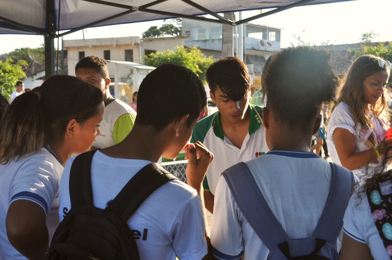 As filas se formaram logo cedo por alunos das escolas das redes estaduais, municipais e particulares que se espalhavam por entre os estandes das diversas formações ofertadas pelo IFPE Barreiros. Seja diante do criatório de abelhas, das maquetes agroecológicas, brincando com os projetos de robótica, admirando-se com as explosões químicas, ou experimentando os alimentos desenvolvido pelos próprios alunos, não faltaram informações para quem estava interessado em conhecer um pouco mais de perto os cursos da escola. Emily Vitória, aluna do nono ano da rede particular de Barreiros, já estava decidida a fazer o curso técnico integrado em Agropecuária e a tarde na praça confirmou a escolha: “Eu só conhecia de ouvir falar, mas hoje pude entender melhor o curso, conhecer mais a escola. Achei tudo muito interessante”. Com a inscrição no vestibular 2020.1 realizada pela internet, ela aproveitou o evento junto com amigas do oitavo ano que já se preparavam para também tentar uma vaga no IFPE assim que tivessem a oportunidade.