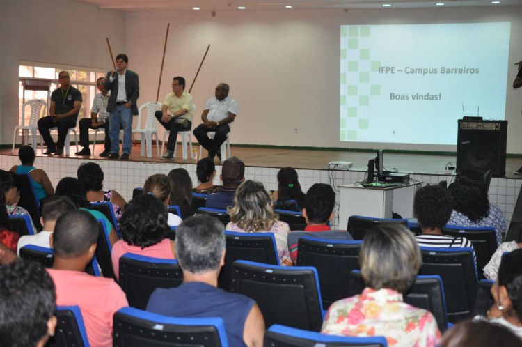 Mais de 200 pessoas acordaram cedo na manhã deste sábado, 11, para participar da reunião entre professores e pais dos alunos novatos do IFPE-Barreiros. Durante o encontro, o diretor-geral do Campus, Adalberto Arruda, deu as boas vindas e falou sobre os investimentos do Instituto. Ele lembrou que, para 2017, houve corte em 35% no orçamento, mas que estão sendo feitos todos os esforços para que a estrutura do Campus melhore a cada dia.