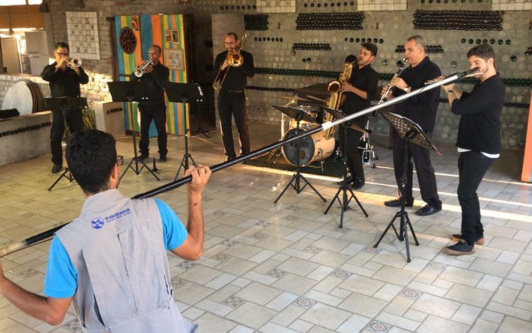 O Sexteto Sapé, grupo formado por professores e alunos do curso técnico em Instrumentos Musicais do Campus Barreiros, participou na última segunda-feira (09/12) da gravação do especial de fim de ano do programa Coisas da Terra, da TV Asa Branca, afiliada regional da Rede Globo com sede em Caruaru. O episódio vai ao ar no último sábado de dezembro, dia 28.