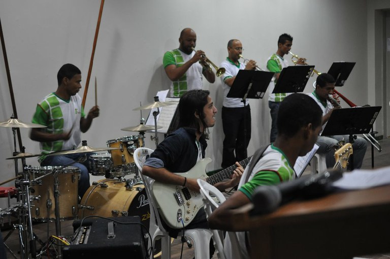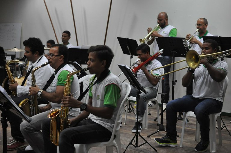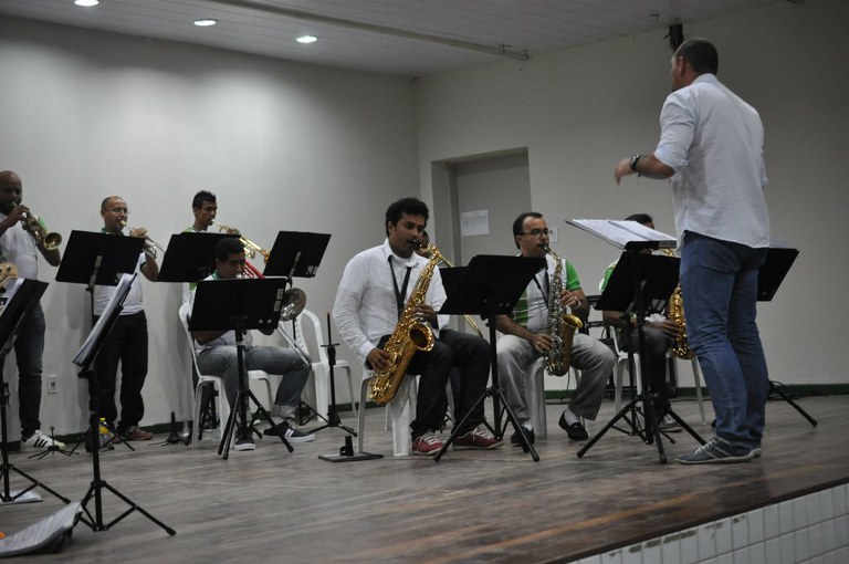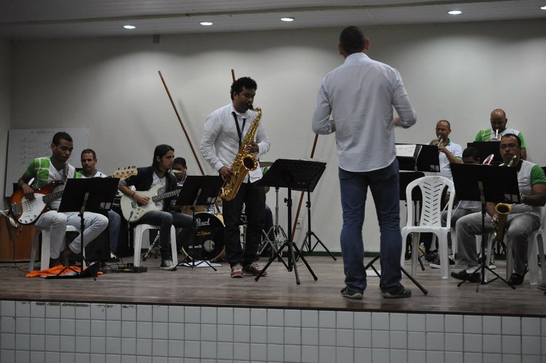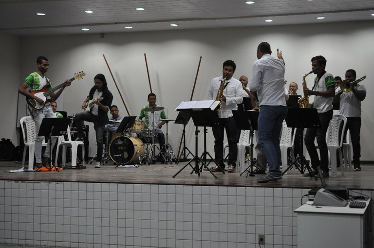 A noite de abertura do I Dia do Estudante Solidário, realizada nesta quinta-feira (11), foi marcada pela potência da música e do cinema. Após as boas-vindas do diretor geral, Adalberto Arruda, do diretor de Ensino, Caetano Pereira, e do professor e idealizador do evento, Rodrigo Lucena, o público que lotou o auditório central pôde prestigiar a apresentação da Big Band do Campus Barreiros. Formado por estudantes do curso técnico em Instrumento Musical e músicos da região, o grupo trouxe um repertório que variou do jazz ao frevo.