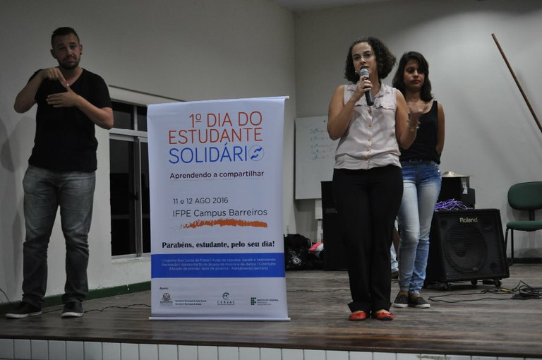 Durante os dias 11 e 12 de agosto, o IFPE-Campus Barreiros promoveu o I Dia do Estudante Solidário. Com o tema “Aprendendo a compartilhar”, o evento teve o objetivo de sensibilizar estudantes, servidores e a comunidade externa em relação à temática da inclusão e arrecadar donativos para instituições que trabalham com crianças com microcefalia e outras deficiências.