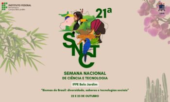 O IFPE Belo Jardim, em parceria com a Unidade Acadêmica de Belo Jardim da Universidade Federal Rural de Pernambuco (UFRPE), abriu inscrições para participantes da Semana Nacional de Ciência e Tecnologia (SNCT), que acontecerá nos dias 22 e 23 de outubro.