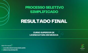 Foi divulgado, nesta quinta-feira (3), o resultado final para o processo seletivo simplificado para ingresso no curso de Licenciatura em Música.