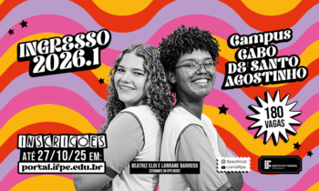 Com o Processo de Ingresso 2026.1 do IFPE, o Campus Cabo de Santo Agostinho está entre as unidades para as quais candidatos/as podem se inscrever. As inscrições estarão abertas até dia 27, e podem ser realizadas através do endereço: https://funcern.br/concursos/ifpe-ingresso-2026-1/