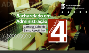 O curso superior de Bacharelado em Administração do IFPE – Campus Cabo de Santo Agostinho recebeu conceito 4 em sua primeira avaliação realizada pelo Instituto Nacional de Estudos e Pesquisas Educacionais Anísio Teixeira (INEP), autarquia federal vinculada ao Ministério da Educação (MEC), a título de reconhecimento. O resultado é considerado positivo e de extrema importância para a Instituição, visto que a escala de pontuação vai de 1 (nota mínima) a 5 (nota máxima).