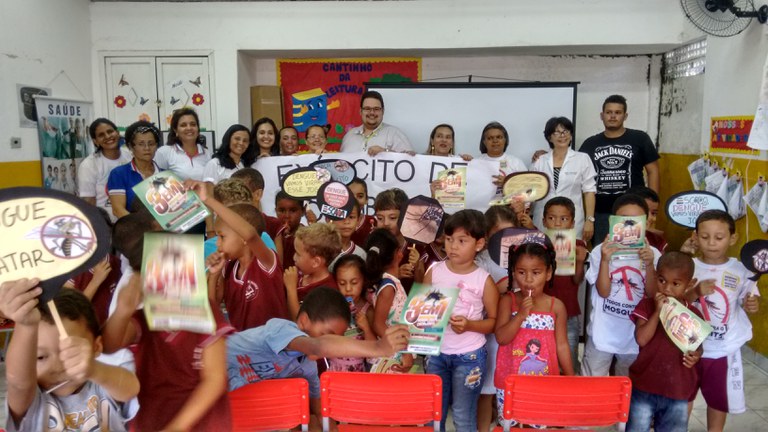As atividades em alusão ao Dia Internacional da Saúde foram desenvolvidas na Escola Municipal Edson Nunes, que atende crianças da Educação Infantil e do Ensino Fundamental I. Profissionais da Secretaria Municipal de Saúde Sustentável realizaram palestra educativa com os alunos, através do ensinamento das ações de prevenção e convidando a todos a fazerem parte do “Exército de Combate ao Mosquito”.