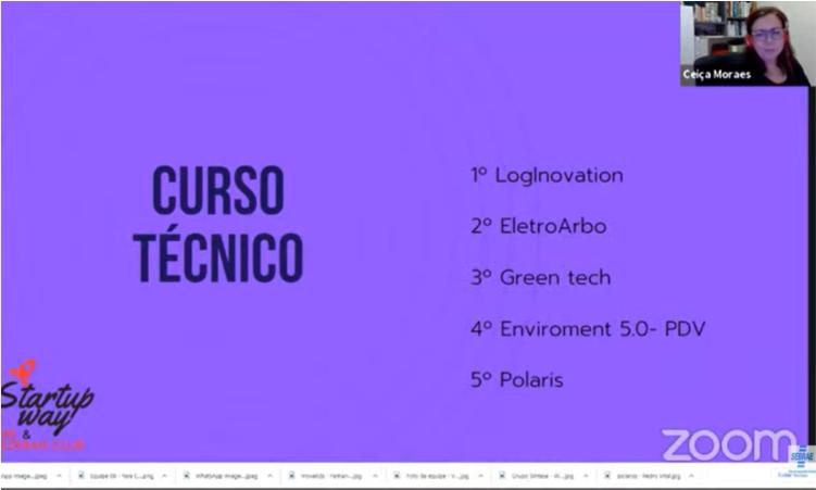 Na categoria de ensino técnico, o segundo lugar ficou com a EletroArbo e o terceiro, com a GreenTech. Já na categoria de ensino superior, a equipe IN6 ficou em primeiro lugar, a InovaKids levou a segunda colocação e a Discovery, a terceira. As seis melhores equipes participarão do curso Bootcamp no Sebrae On-line.