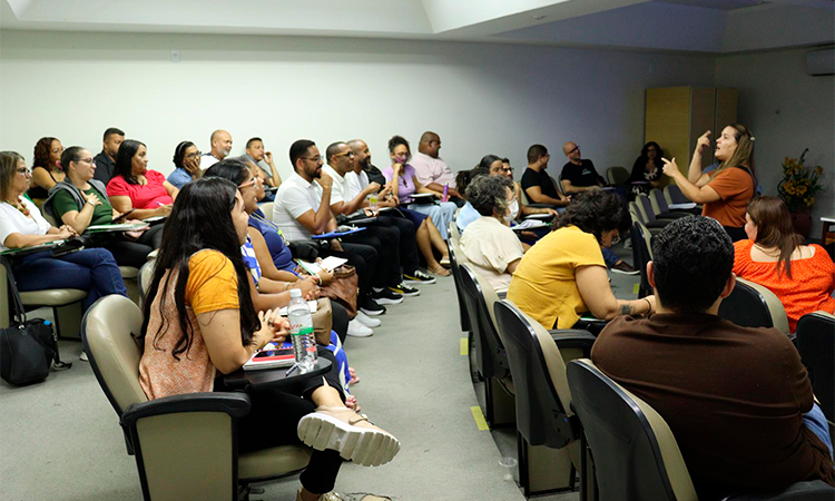 A segunda oficina abordou o letramento racial e foi ministrada pela pró-reitora de Extensão do IFPE, Laura Fabiana da Silva Caliento. Ela reforçou que esse tema é essencial dentro do programa, que trabalha diretamente com jovens em contextos de vulnerabilidade sociorracial agravada. “Quando essas equipes forem para os territórios, vão se deparar com uma maioria de jovens negros, moradores de comunidades periféricas. Por isso, o letramento racial é fundamental para que esses profissionais possam imprimir na prática a questão racial, pensar em estratégias para ações antirracistas e propor iniciativas que problematizem o racismo estrutural. Não basta não praticar o racismo, é preciso também fortalecer a autoestima, a autonomia e a integridade desses jovens por meio de uma educação comprometida com a igualdade racial”, destacou.
