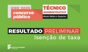 O Instituto Federal de Educação, Ciência e Tecnologia de Pernambuco (IFPE) divulgou o resultado preliminar das solicitações de isenção da taxa de inscrição do concurso público para cargos técnico-administrativos em Educação (TAE’s). O resultado da solicitação está disponível na área do/a candidato/ao do portal da Fundação de Apoio à Educação e ao Desenvolvimento Tecnológico do Rio Grande do Norte (FUNCERN), banca organizadora do concurso.