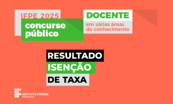 O Instituto Federal de Educação, Ciência e Tecnologia de Pernambuco (IFPE) divulgou o resultado preliminar das solicitações de isenção da taxa de inscrição do concurso público para Professor do Ensino Básico, Técnico e Tecnológico (EBTT). O resultado da solicitação está disponível no portal da Fundação de Apoio à Educação e ao Desenvolvimento Tecnológico do Rio Grande do Norte (FUNCERN), banca organizadora do certame, na área do/a candidato/a.