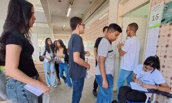 Os amigos Josué Cauã e Yasmim Bezerra chegaram cedo e estavam confiantes em entrarem juntos no curso Técnico Integrado em Eletrotécnica do IFPE Campus Recife. “Quero muito passar, porque eu sei da qualidade do ensino do IFPE”, disse a candidata.