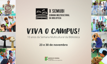 Tem início neste sábado, dia 23, a décima edição da Semana Multicultural da Biblioteca (SEMUBI) do Campus Cabo de Santo Agostinho. Este ano, o evento foi organizado sob o tema Viva o Campus!, privilegiando a oferta de atividades para a comunidade acadêmica durante o turno da manhã e a participação de convidados/as.