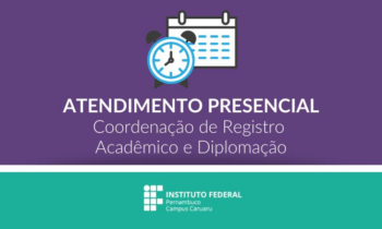 Agendamento: para que o atendimento presencial ocorra, é necessário agendamento prévio, através do e-mail crad@caruaru.ifpe.edu.br. O agendamento pode ser feito de segunda a sexta, das 8h às 17h.