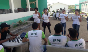 Na última sexta-feira (16) uma parceira entre o Grêmio Estudantil Mestre Vitalino, Núcleo de Estudos de Gênero e Diversidade (NEGED) e Coordenação de Apoio ao Ensino e ao Estudante (CAEE) realizou ato para marcar a passagem do mês da mulher no IFPE Caruaru. Alunas do campus percorreram salas de aula e setores administrativos para denunciar a violência contra a mulher e a desigualdade de gênero. A performance das estudantes exibiu cartazes com dados do Anuário Brasileiro de Segurança Pública e mensagens de alerta.