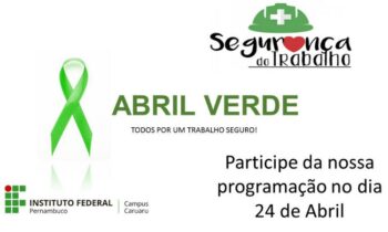 O Campus Caruaru promove no próximo dia 24 deste mês o evento Abril Verde referente ao mês de conscientização para a prevenção de acidentes de trabalho.