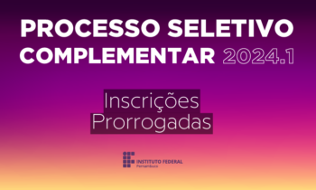 O IFPE Campus Caruaru prorrogou até 25 de fevereiro as inscrições no Processo Seletivo Complementar para o preenchimento de vagas remanescentes do Processo de Ingresso 2024.1. São 22 vagas para o curso técnico em Segurança do Trabalho, modalidade subsequente, e 24 vagas para o Bacharelado em Engenharia Mecânica.