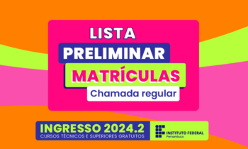 O IFPE Caruaru divulgou, nesta segunda-feira (9), o resultado preliminar das matrículas dos/as aprovados/as na chamada regular do Processo de Ingresso 2024.2. Confira aqui.
