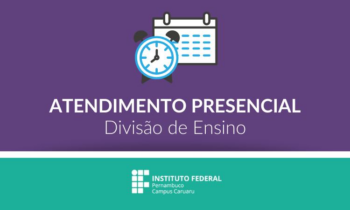 A Divisão de Ensino (Diven) do IFPE Caruaru informa ao público que está retomando os atendimentos presenciais, mediante agendamento. Interessados devem enviar e-mail para diven@caruaru.ifpe.edu.br, solicitando o atendimento. A Diven entrará em contato com para estabelecer/combinar o dia e o horário. Já o atendimento online segue de segunda a sexta-feira, das 13h às 17h e das 18h às 22h, pelo mesmo e-mail.