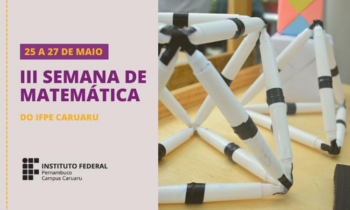 Aproveitando a data, o Núcleo de Matemática anuncia que nos dias 25, 26 e 27 de maio acontece a III Semana de Matemática do IFPE Caruaru. Com o objetivo de ressaltar a importância da disciplina no meio acadêmico e pessoal, a programação vai trazer diversas atividades, todas on-line, como as competições de Xadrez e de Cubo Mágico (CUBIF), palestras, mesas-redondas e minicursos. O evento é exclusivo para estudantes do Campus.