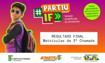 O IFPE Campus Caruaru divulgou nesta quarta-feira (21/05), o Resultado Final da 3ª chamada para matrículas do Programa PartiuIF. Também foi publicado o Resultado Final da Aferição da Condição Autodeclarada.