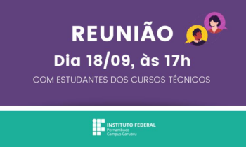 O IFPE Caruaru convida os estudantes dos cursos técnicos, turmas do integrado e subsequente, para participar de reunião na próxima sexta-feira (18) com as coordenações de curso. Será via Google Meet, das 17h às 18h30. O endereço está disponível no link abaixo. Na ocasião, as primeiras semanas de ensino remoto serão avaliadas. Também haverá uma reunião com os discentes de Engenharia Mecânica, mas a data ainda será definida e posteriormente divulgada.